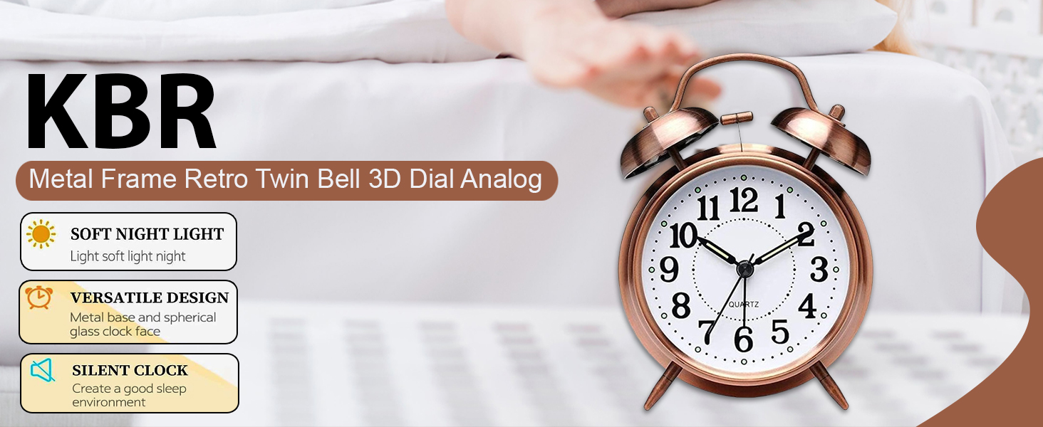 The KBR Vintage Twin Bell Table Alarm Clock combines retro charm with modern functionality, featuring an extra loud mechanical alarm, silent sweep quartz movement, and a built-in night LED light. Its durable metal construction with a copper finish and compact size make it an ideal, stylish companion for students, kids, and professionals seeking reliable, noise-free timekeeping.