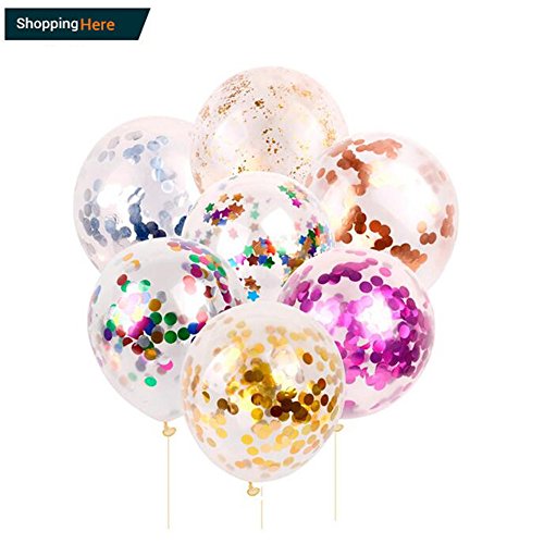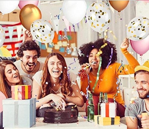 Product description ★ Introducing 12" Clear Party Gold Balloons With Round & Heart Gold Confetti ★ offering this 32 pack composed of 25 gold confetti balloons , 1 fantastic gold curling ribbon roll crimp and 5 balloon flower clips to decorate your next party. Toss those plain jane balloons away and make sure to give our fun confetti balloons a try. Benefits: ✔ Our balloons come prefilled with the confetti ✔ You get 25 balloons with 1 gold curling ribbon roll crimp and 5 balloon flower clips to make incredible decorations ✔ Large 12 inch balloons ✔ Durable latex that supports helium ✔ Adds style to your venue/party ✔ Makes a ideal gift ✔ Love them or your money back. We are confident that you will love your balloons but if you are not satisfied, our products are always backed by 100% Money Back No Questions Asked Guaranteed! Click the Add to Cart button above and get your pack TODAY!