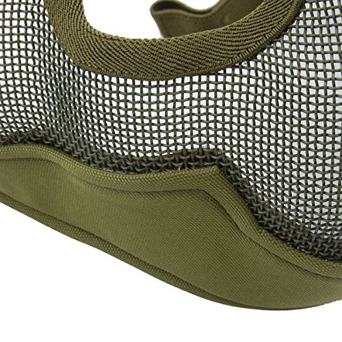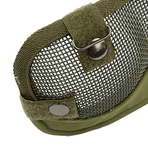 Material: 100% metal wire / Full ventilation / One size fit all. / Half face mesh protection, highly breathable / Great for outdoor war game activities. / Carefully design to allow space between mask & month for easy breathing