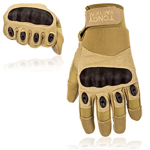 Features 1. Hard knuckle design protects your back of the hand against extreme impact and abrasion injuries. 2. Pre-curved design & lean ergonomic cut follows the contours of your hand for greater dexterity and less bulk when holding objects. 3.Full finger design for full protection, fingerless/half finger design for flexible hands. 4. Material is lightweight and breathable so your hands stay cool and comfortable in any environment. It is also ideal choice for bikers 5. Adjustable straps fits all hand sizes, with easy on and off flexibility 6. Ideal as cycling gloves, driving gloves, motorcycle gloves, batting gloves. Item Description: 1. One pair of gloves (By Toncy Tactical) 2.Colour: Black/Green/Tan 3. Sizing guide: Please refer to the 7th image of this product listing above. (Measure the length around your palm at its thickest point, if you are right handed measure your right hand, if you are left handed measure your left hand) M 20-22 cm 7.5-8.5 inches L 22-24 cm 8.5-9.5 inches XL 24-26 cm 9.5-10 inches Get your pair of Gloves delivered to your door by clicking the "Add to Cart" button