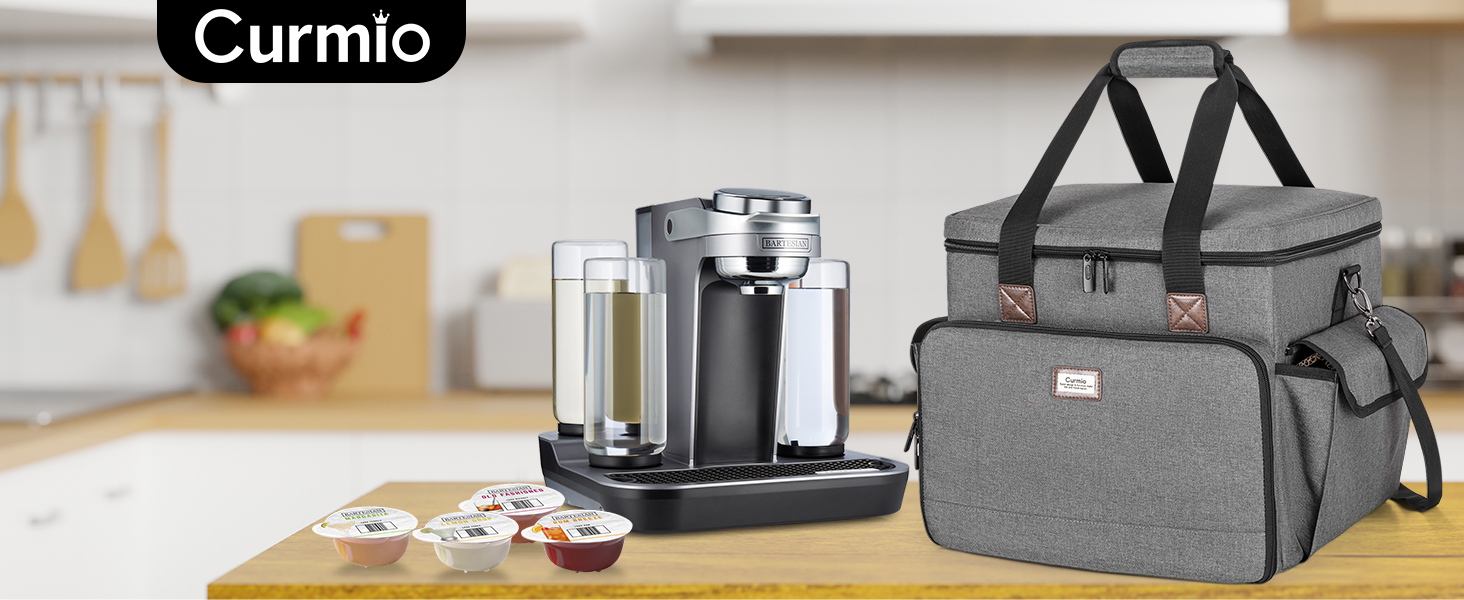 The CURMIO Carrying Case is a patented, insulated travel bag tailored for Bartesian cocktail machines. Measuring 13.8 x 13.2 x 12.8 inches, it offers spacious, organized storage with multiple pockets and elastic loops for capsules and accessories. Crafted from heavy-duty nylon with waterproof aluminum foil lining and foam padding, it ensures durability, protection, and easy cleaning. Equipped with a reinforced handle and detachable shoulder strap, itβs the ultimate stylish and practical solution for cocktail enthusiasts on the go.