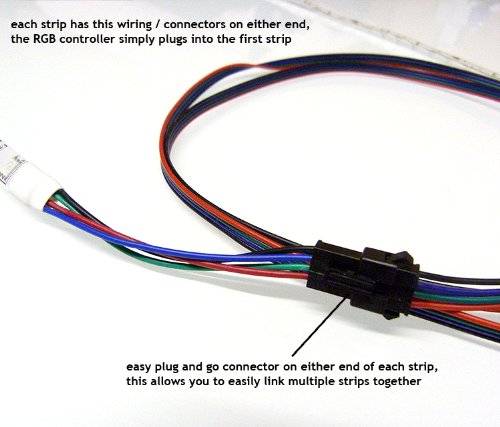 These strips are ideal for applying the rear of your TV as they give a stunning back light reflected off adjacent walls.The strips can be connected together to form a continuous chain with the connection cables provided. The supplied controller offers numerous options so you can set the lights to gently fade, pulse through the whole colour range or stay fixed on an individual colour. The controller has a built in memory meaning if the lights are switched off they will always come back on the same colour. Although the primary / most popular use is with TV's, they are often used in other areas such as bedrooms, kitchens, computers, etc...