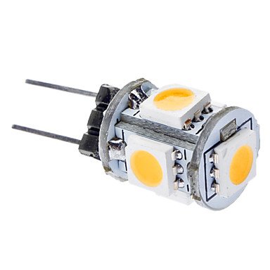 Please check your local Voltage , Socket before order.Brand new and high quality.Easy to install and simple to replace.SpecificationsBulb Base:G4,Bulb Shape:T,Light Color:Warm White,Type:LED Corn Lights,Wattage:0.5W,LED Type:SMD 5050,LED Quantity:5,Voltage (V):DC 12,Initial Lumens (lm):3000,Color Temperature (K):3000K,Lifetime (h):>15000,Beam Angle:#,Net Weight(kg):0.002,Listing Date:07/17/2013,Please check your local Voltage , Socket before order.Widely used for landscape, marine, boats, yachts, puck light, kitchen, under cabinet and ceiling, etc.