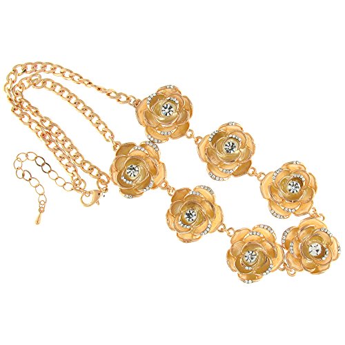 Pretty jewellery set consisting of matching gold toned necklace and pair of clip on earrings. The necklace consisting of seven cream coloured enamel roses with petite clear crystal stones, set on gold toned belcher style chain and fastens with lobster clasp and an extender chain. Adjustable necklace 43-48 cms. Earrings: 2 x 2 cms. This wonderful set is an irresistible combination of beauty and dynamism.