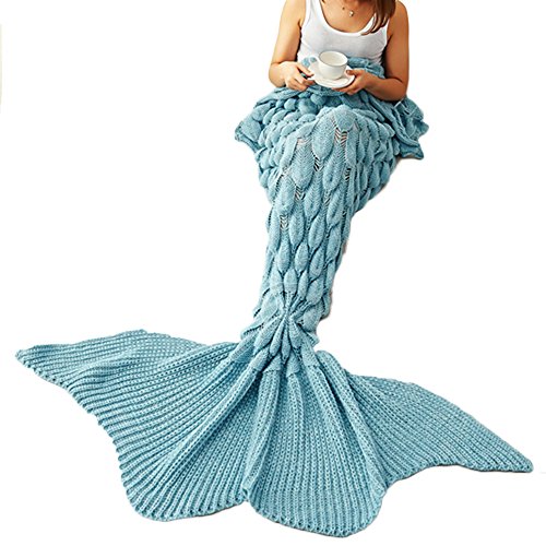 SpecificationThis is the girl's dreamed mermaid tail blanket, knitting wool polyester, packed with a small bag. Which is convenient to carry with you anywhere, outdoor activities, car, office, night work and so on, versatile function. The soft crochet snuggle mermaid neither too thin nor thick, can be used for all seasons cover (Spring, Summer, Autumn, Winter) ApplicationA sweet present for your family, your girls,and your friends. Mermaid tail blanket will be a hot booming gift for Christmas, Valentine's day, birthday, all gifts need holidays. It is suitable for all seasons. Placed mermaid tail blanket on chairs or sofa, make fun to your living room or bedroom. Features-Soft and cozy precision knitting mermaid tail blanket, Eco-friendly and Skin-friendly perfect for kids or adults wrap. -Adorable and beautiful mermaid tail blanket, like a sleeping bag, could fit your feet go in fins, warm your feet. -Easy inside and out, can be used on the couch, for camping, sleepovers, in bed, in the car - anywhere! Washing Instructions Please kindly wash separately when the first time using. This crocheted mermaid blanket can be machine washed at a low temperature and tumble dried. We recommend that you do not wash the blanket with items containing zippers that might snag.