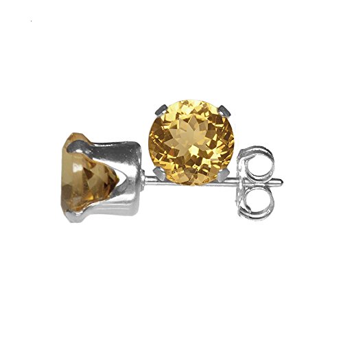 6mm Round Faceted Golden Yellow Genuine Citrine Set with Sterling Silver Snap-in Setting & Butterfly / Scroll (Stamped) Stud Earrings Pair, Gemstone Clarity VVS, Weighing 1.10 Grams