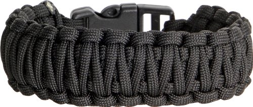 Knotty Boys Survival Bracelet Fat Boy style. Size: Large (9 diameter). Color: Black. Hand tied nylon cord construction. Enables you to carry several feet of nylon cord that can be used in an emergency for countless survival applications. One inch of your wrist diameter equals approximately one foot of cord. 5/8" release buckle. Bulk packed."