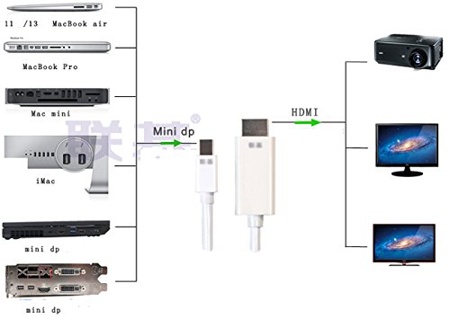 Compatible with Mini DisplayPort w/ThunderboltTM, PC with a HD TV, monitor or projector with HDMI port Compatible with Apple MacBook, MacBook Pro, MacBook Air, iMac, Mac Mini, Mac Pro, and Microsoft Surface Pro/Pro 2/Pro 3 (not for Windows Surface RT); Lenovo ThinkPad X1 Carbon/X230/X240s, L430/L440/L530/L540, T430/T440/T440s/T440p/T530/540p/W530/W540, Helix; Dell XPS 13/14/15/17, Latitude E7240, E7440, Precision M3800; ALIENWARE 14/17/18; Acer Aspire R7/S7/V5/V7, Intel NUC, Asus Zenbook, HP Envy 14/17, Google Chromebook Pixel, CyberPower zeusbook edge x6; Toshiba Satellite Pro S500, Tecra M11, A11 Transmits both audio and video, and it can be used a video resolution of up to 4 K and pass-thru Great for uncompressed digital audio 7.1, 5.1 or 2 channels Connector Low does not block adjacent ports on your laptop, it has moulded strain relief for a long operating life, and it has a ergonomic tread design for connection/Easy. The gold-plated connectors resist corrosion, they pouvent provide durability, and improve the signal transmission; foil & braid shielding reduces electromagnetic interference; Bare copper conductor improves the performance of the cable.
