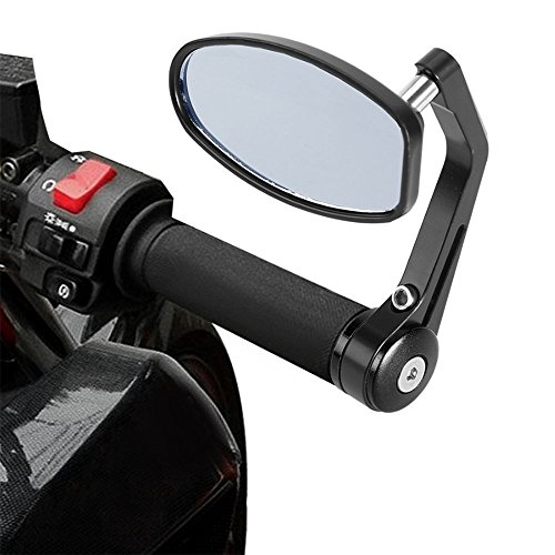Specifications: • Package Included: Set of Two Bar End Side Mirrors(Left and Right) • Material: High Quality CNC Billet T-6061 Aluminum And Anodized Housing • Color: Black • Mirror Size: Length 4 inches X Width 2 inches (10.2 cm X 5.1 cm) • Stem Length: Approx. 6 3/8 inches (Approx. 16.25 cm) • Mirror Material: Optical Grade Blue Anti-Glare Glass Mirrors Features: • Optical grade acrylic glass mirrors • Sleek and Stylish Design • Instantly Upgrade Your Bike Into A New Custom Eye Catching Look • Multiple Angle Adjustments, 180 Degree Swivel Ball Joint Design (Can Be Adjusted to Positon as seen in Photos) • Superior Quality, Real T-6061 Billet Aluminum and Anodized (Note: Only Authentic T-6061 Can Be Anodized) • Perfect Compliment To Your Bike • Easy to install, no modification is required Fitment: • Fits standard hollow 7/8 inches diameter handlebars • Uses Interal Clamp System • This mirror is universal, not particularly made for certain bike, please make sure your bike use hollow round 7/8" handlebar • Fits: Aprilia, BMW, Buell, Ducati, Harley Davidson, Honda, Indian, Kawasaki, KTM, Suzuki, Triumph and Yamaha
