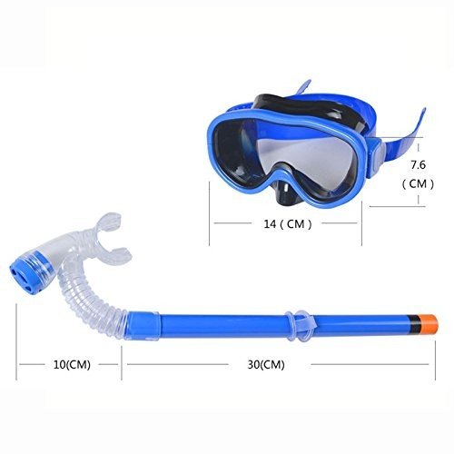 Description: Professional diving device, suitable for both kids and teensTransparent tempered glass lens, anti-fog and shatter-resistantAdjustable and double silicon straps can cling to head more firmly3D waterproof silicon skirts can ideally correspond with faceNontoxic silicon mouthpiece and purge valve provide comfort whilst helping any excess water escaping when breathing out Compatible with:Mirror Width about 5.5", best for 3-11 years old ,Please check the size whether can fit with you . Package content:1 x Mask1 x Snorkel