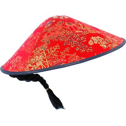 • Celebrate Chinese New Year • Oriental hat with faux plait • Measures 33cm wide • One size fits most adults & teens Give your fancy dress outfit an Oriental twist with this eye-catching red hat. It has a pretty floral pattern featuring delicate pink blossoms and an elastic strap to secure it under your chin. Attached to the back is a long black plait to finish off your look.