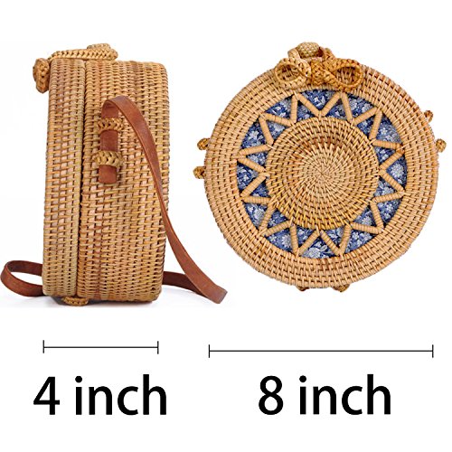 Handwoven Round Rattan Bag, Women Beach Shoulder Crossbody Round Bags.