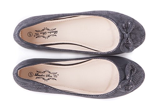 Ladies & Girls Flat Ballerina Shoes & Pumps By London Shoe Co - CASUAL WORK EVENING (6 UK, Black Faux Snake)