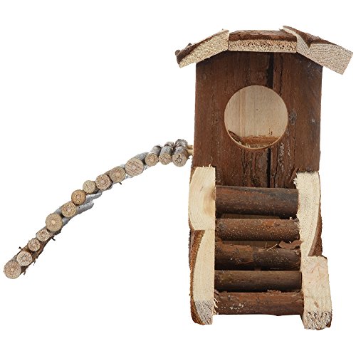 Product Features: Pet can grind their teeth with it, solve problems like cage destruction and chewing Function: Can provide entertainment, exercise, odontoprisis effect, even reduce their pressure Applicable for hamsters, chinchillas, guinea pigs and other small pets Strengthen connection between you and your pet,you can play with them and help your pet to keep healthy Offer Your Pet a Safe Play Space to Play When Not in Their Cage Product Parameters: Dimension: about 16.5*8*16.5cm / 6.50*3.15*6.50in, door: about 6*5cm / 2.36*1.97in, window diameter: about 4cm / 1.57in, removable stairs: about 13.5*7cm / 5.31*2.76in Material: Wood Note: Please avoid placing it in high temperature and wet places