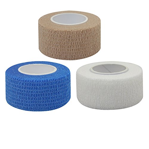 Product Basic Information: Prouduct Type: Cohesive Bandage Brand Name: STpro Material: Non-woven Package Quantity: 5cm*6rolls(Blue)+2.5cm*9rolls(White/Skin/Blue) Size: 5cm*6rolls+2.5cm*9rolls ATTENTIONS:Don't tie the bandage too tight. What is self-adhesive bandage? A self-adhering bandage or cohesive bandage is a type of bandage or wrap that coheres to itself, but does not adhere well to other surfaces. Because of this, it is commonly used as a wrap on limbs, since it will stick to itself and not loosen. It is used on humans, but also commonly used as a wrap on the legs of livestock because it will not stick to hair, so it is easily removed. What's the self-adhering bandage for? 1.Great for swelling(medical treatment fixing and wrapping), sprain and general soreness. 2.Widedly Used in Medical, Sports and Veterinary Area. 3.Used to protect the various training, match and sports. 4.Animal medical wrapping and sport protection. 5.To prevent muscle strain. 6.Prepared for the accidential aid kit. Product Advantage 1.Material Quality Made of elastic cotton fabric High tensile strength and adhesion 2.Self Adhesive Non sticky to hair or skin 3.Breathe freely Excellent comfort & air permeability 4.Hand Tearable No scissors needed