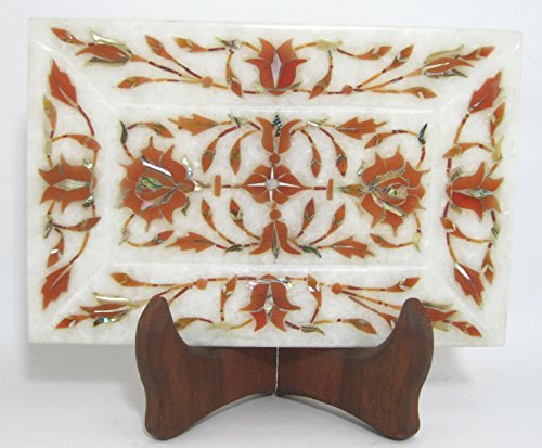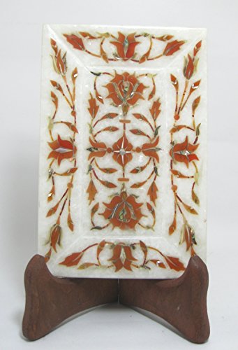6" x 4" White Marble Decorative Wall Plate Cum Tile Multi Color Semi Precious Stones Inlay Floral Design . Kitchen Accessories Home Decorative Handmade Collection. Add Royal And Elegant Touch To Yours Life Style. This Masterpiece Will Be Subject Of Talk Among Your Guest. Can be used in Home, Office, Hallway, Lobby.We take customize orders, for any queries please write to us. The semiprecious stones inlaid are as follows: Lapis lazuli ( Blue stone ) , Malachite ( Green stone ) , Turquoise ( Light Blue ) , Carnelian ( Orange Red ) , Mother of Pearl ( White shiny ) , Eblone Shell ( Colorful Shiny ) , Jasper ( Brown )