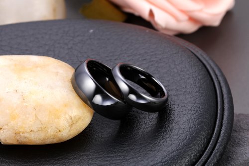List price is for one ring only. Purchase two rings for a matching set.Ceramic rings are known because they are so hard to scratch and white all the way through, unlike black tungsten rings which are plated and can wear off. They also weigh less than half of tungsten, making them a more comfortable wedding ring to wear on a daily basis. Width: 8mm for male; 6mm for female Thickness: 1.2mm for both rings Including one velvet bag printed "JewelryWe" on it.