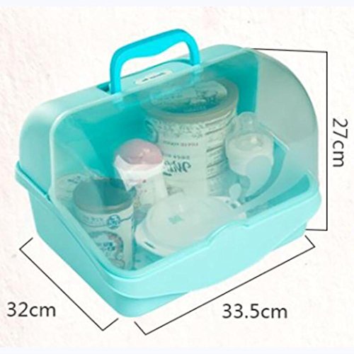 Name: storage boxMaterial: environmentally friendly plasticSize:32*33.5*27cmWith cover keeping away from dust, flies and bug., protect the baby healthCan place the baby bottle, milk powder, you can also place fruit, tableware,Snacks.Holds up to bottles upright for drying while excess water collects in bottomUsing environmentally friendly PP high permeability material,non-toxic and tasteless,it's food grade good material and safe for health.Hollow filter plate design,ensure tableware and food drying to prevent bacteria from breeding.Large capacity design,to contain more bottles,very practical and convenient.After disinfection and cleaning, close the lid and avoid re-contaminationTake the storage box to make your trip more convenient