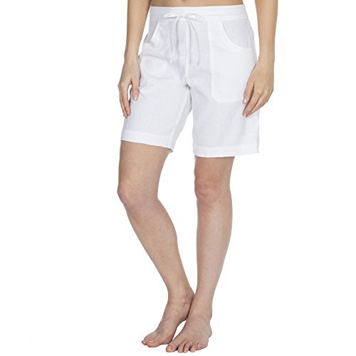 CAUSEWAY BAY Ladies Womens Summer Linen Casual Midi Shorts with Pockets Size 10-18 (White, 12)