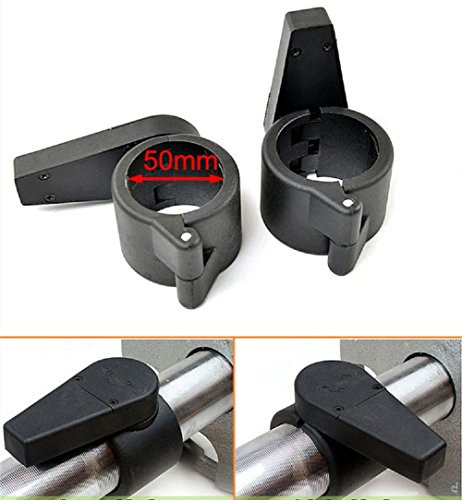 Description: Color:black Material:plastic Inner size:2inches(50mm)Features: This barbell clamp fits for 2 inches Olympic standard size. Quick release, not easy to slide. Perfect for crossfit workouts, Olympic lifts, overhead press,deadlifts,bench press,or any other workout using Olympic Barbell and Dumbbells Material:reinforced plastic. ABS Package include: 2 Barbell Collars Clamps