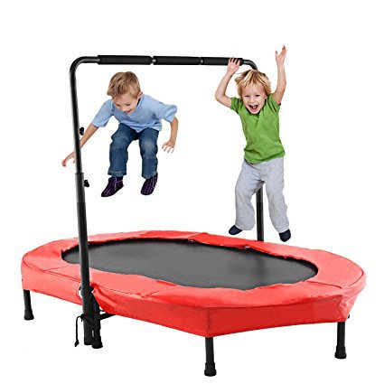 Ultrey sports garden trampoline, user weight max. 100 kg Thanks to the trampoline sports the coordination and motor skills, it can also increase increase muscle strength, and to improve the protects the joints. The trampoline are ungeheuren fun for young and old Kreislauffördernd and you also improves dexterity and coordination skills. As a special feature during the Ultrey trampoline is the sturdy and unique removable bar handle. Depending on the height can be adjusted u grab rail of 128 cm. Easy to put on and take off: The folded trampoline it's something that takes less than 10 minutes and install and is convenient to store. Technical details Material: Iron, PP, PVC Color: Blue, Red Size: 91 * 142 cm Handle Size: 91 * 78 (cm) 3 Handle heights: 94 cm, 102 cm, 112 cm, 120 cm, 128 cm More about this product Max. User Weight: 220 lbs Removable U-shaped bar handle can The Edge of cover offers protection against contact with the springs Durable jumping mat made of polypropylene Entertainment for young and old Ideal for Gymnastics, exercise, fitness training in your home and outdoor fun Please note: Not suitable for children under 36 months. To be used by children only under the direct supervision of an adult Do not use in moisture use, the Jumping Mat must be dry Box Contents 1 x Sports Garden Trampoline