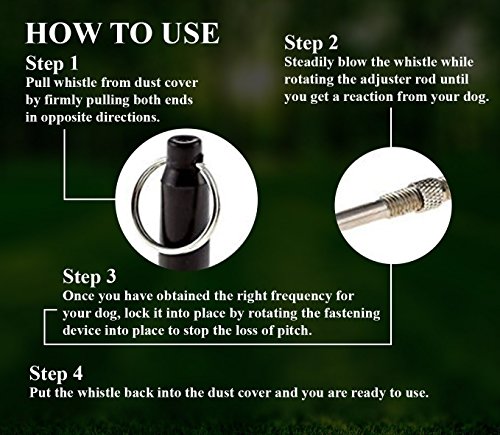 Features: Size:8 x 0.8cm Small and Lightweight Instructions: 1, Adjust the pitch and blow the whistle to train your dog. Your whistle has a nut and screw that can adjust the frequency when turned. Continue testing until your dog perks up. Then you will know that you have reached a frequency he can hear. 2, Use the dog whistle with varying sequences to train your dog.For example, one long burst can mean "come," while a series of short, staccato bursts might mean "sit." 3, Keep your whistle commands consistent and your dog will always know what you expect of him.