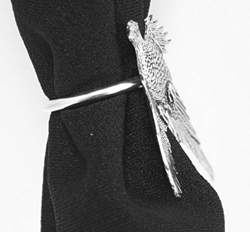 This detailed scarf ring is Handmade in Great Britain by Hoardersworld. The bird is made from Fine English Pewter which is soldered to a silvertone base metal ring. The Ring diameter is 1" (2.5 cm) approx. The design on the ring measures 2 3/4" x 1 3/4" (7 cm x 4.5 cm) approx. Presented in a lovely velveteen pouch.