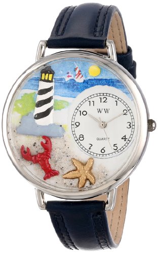 The perfect gift for any lighthouse lover. Give that special someone a gift they will show friends with this beautiful Whimsical Watch. Whether you prefer gold or silver, this lighthouse themed watch will coordinate with your favorite Whimsical Earrings, Bracelet, Necklace or Charms. It fastens with a buckle for easy on and off. All large Whimsical Watches are 10" in length, 1.5" in diameter, come with quartz movement, lithium ion battery, scratch resistant glass, water resistant case, leather strap, one year manufacturers warranty all in a beautiful gift box. Whimsical Watches are high quality, fashion statements that are bound to be the topic of every conversation and favorite gift for every occasion!
