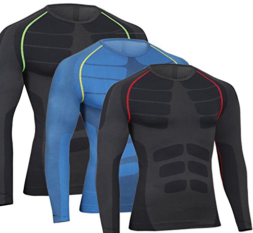 *** NOTES *** 1. This is not Amazons standard size, so please kindly refer to our suggested chest and the actual measurement, rather than follow the Amazon's "Size Chart". 2. Tight Fitting, like a second skin. If you do not know your measurement chest size, please choose 1 size up than your usual wearing U.S size. Production Introduction *Compression Supports your muscles to prevent fatigue during intense training. *Creates a soft, durable fabric which allows freedom of movement yet retains its shape through repeated wash cycles. *Performance Technology: Perspiration off your skin, rather than absorbing it. It's engineered with Moisture Transport System to deliver core temperature regulation and maximum breathability. * Moisture Wicking: Fabric transfers moisture from the skin to the fabric's surface for quick evaporation, keeping you dry and comfortable. * Ventilation: Mesh or breathable fabric inserts in high heat zones allow sweat to evaporate and cool air to circulate. Features This compression shirts is designed for all seasons, Releases heat and wicks moisture with a cooling effect. Early Recovery Providing recovery after hard workouts, helps to control blood flow and prevents soreness Flatlock Stitching Seams are sewn flat to the garment to enhance durability and prevent skin chafing/irritation. Shields Ultraviolet Rays Safeguards your skin from harmful UV rays by more than 99% (UPF 50+) Deodorization function Repels unpleasant smells left behind from dirt and sweat. Fabric Type: Stretch Usually a blend of knit or woven fabric with spandex or elastane.