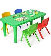 The Costzon Kids Table and Chair Set is a 5-piece wooden activity furniture set featuring a round table, 4 ergonomically designed chairs, and 15 toy bricks. Made from premium poplar and birch wood, it offers durability, safety with rounded edges and non-slip pads, and a waterproof surface for easy cleaning. Its space-saving design and ASTM/CPSIA certifications make it ideal for homes, classrooms, and daycares, supporting kids aged 4 and up in comfortable, healthy play and learning.