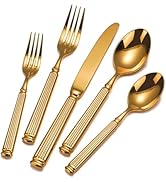 This silverware set has enough stainless-steel utensils to accommodate eight at the dinner table. The individual pieces are sturdy and have a simple design that will work well for either everyday meals or formal dinners. I think the spoons may be a little large, but that is my opinion, others may like that. One unique feature that I do like is that this set comes with steak knives that have the same design as the other pieces. Overall, this is a quality set of flatware that looks good and is dishwasher safe.