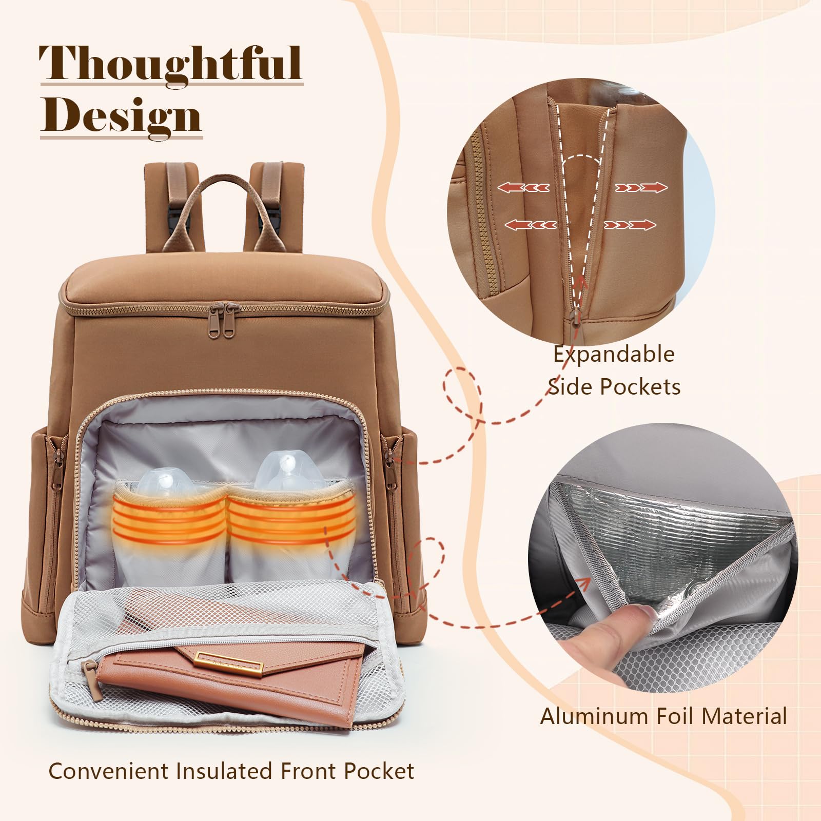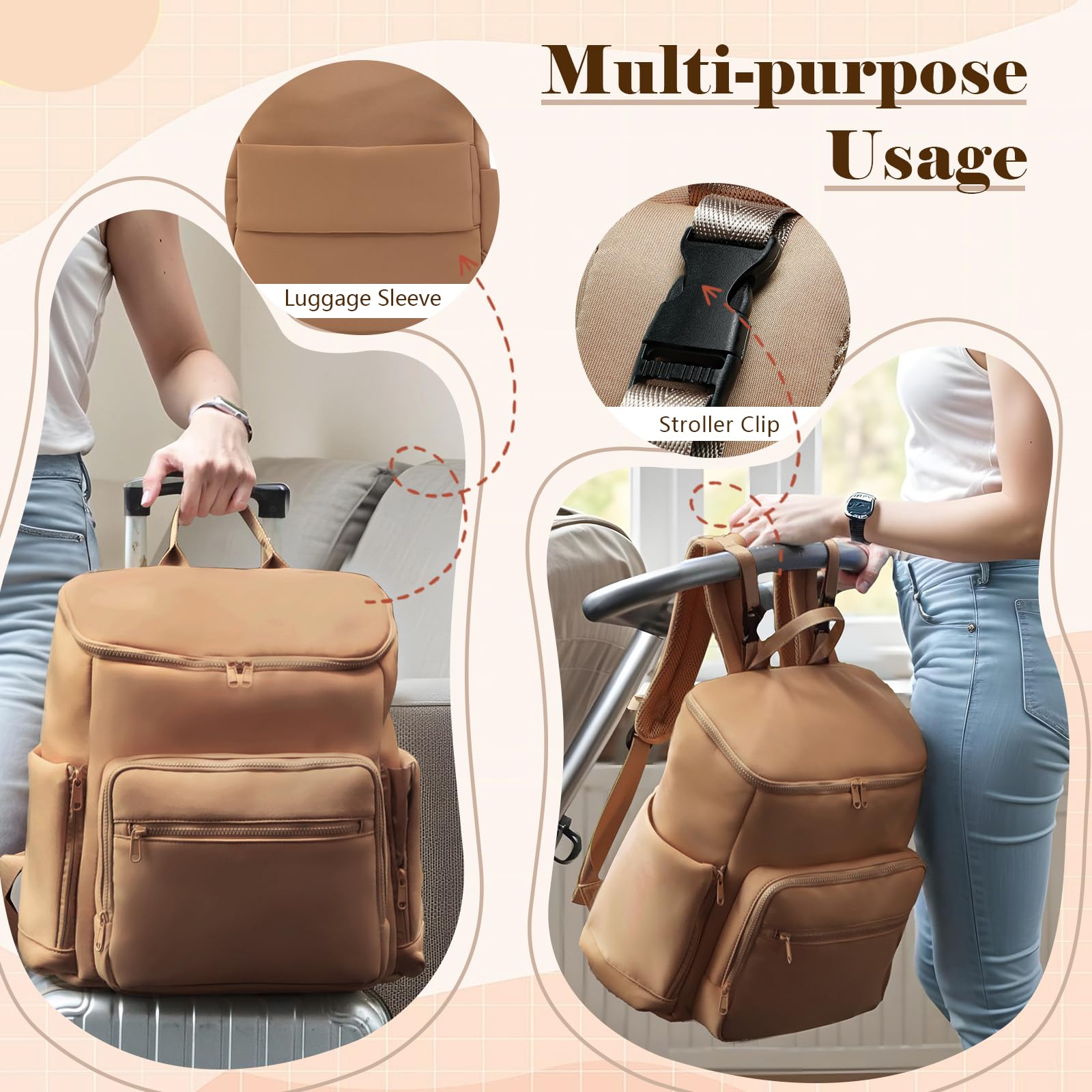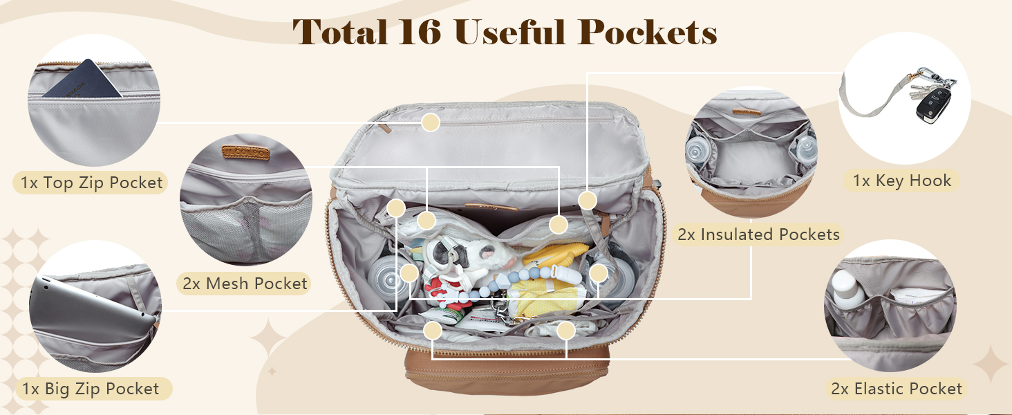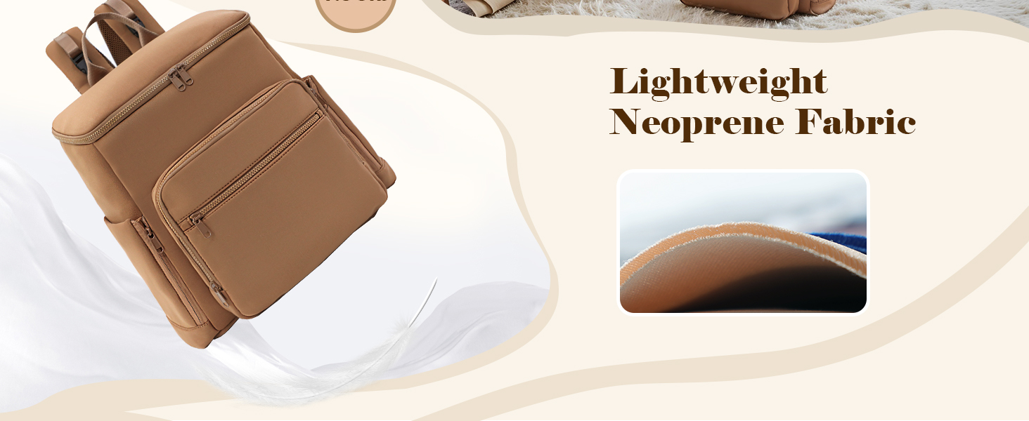 This neoprene diaper bag backpack weighs only 1.98 pounds and offers a spacious 20-liter capacity with 16 specialized pockets, including 4 insulated compartments. Designed for busy parents, it features expandable side pockets, a built-in key hook, and multiple carrying options—backpack, stroller clip, luggage sleeve, or top handle—making it the perfect blend of lightweight convenience and organized functionality for on-the-go baby care.