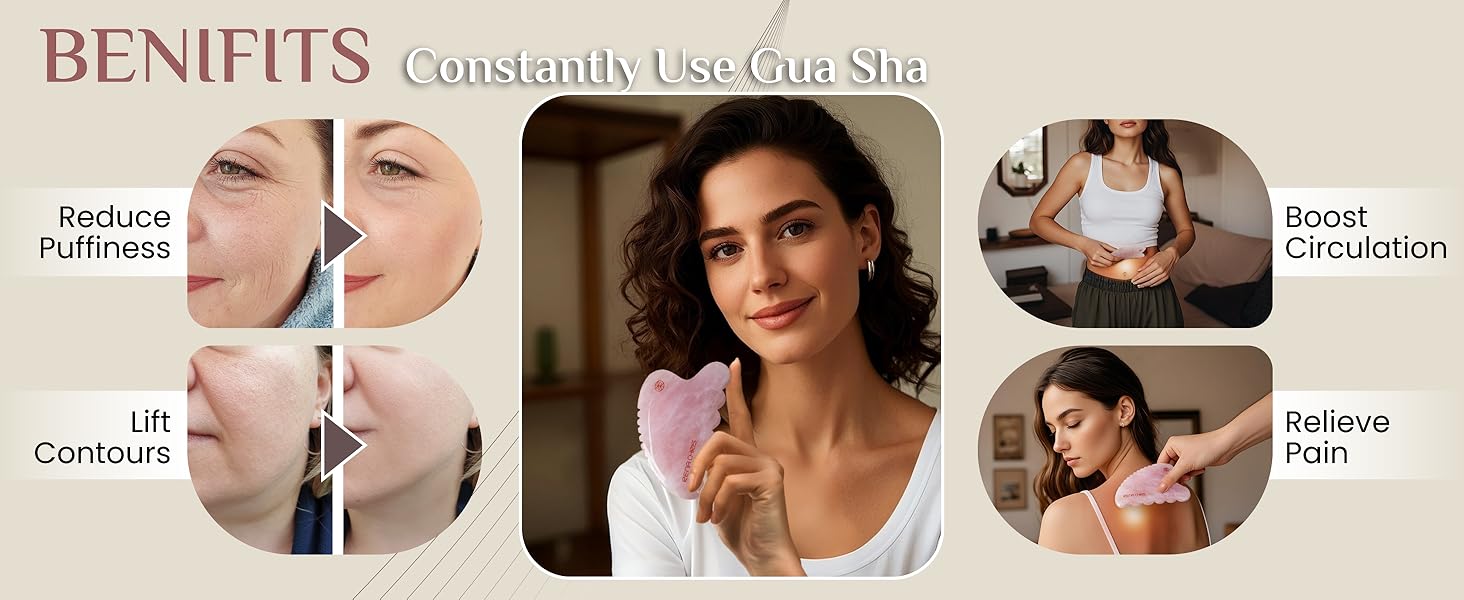 Rena Chris Rose Quartz Gua Sha Stone - Face & Body Lymphatic Drainage Massager for Jawline Sculpting, Puffiness Reduction & Whole Body Relaxation (Pink)