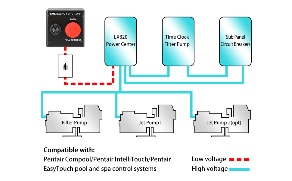 This Double Gang Plate Shut-Off Switch operates at 24VDC and integrates an emergency alarm to instantly halt pool or spa equipment during critical situations. Designed for seamless compatibility with Pentair Compool, IntelliTouch, and EasyTouch systems, it features thickened copper contacts for enhanced electrical stability and CE certification for safety. Its user-friendly mounting base and versatile knockout holes ensure quick, adaptable installation, making it an essential safeguard for any modern pool or spa setup.
