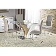 The Furniturevilla Simone HG Glass Dining Table is a modern rectangular dining table designed to seat up to 6 people comfortably. With dimensions of 1600W x 900D x 760H mm and a maximum weight capacity of 74 kg, this table features a clear glass top supported by a high gloss white frame, making it a stylish addition to any dining area. Please note, chairs are not included.