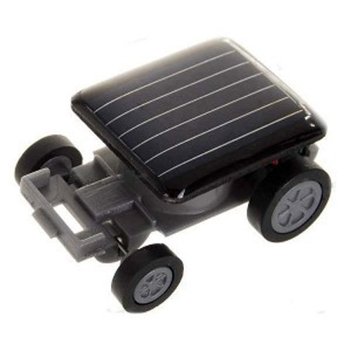 The Mini Solar Racer is a toy car which claims to be the world's smallest solar powered car. The solar panel allows the car to move from eco-friendly solar energy when the car is placed either in sunlight or under a bright artificial light. The Mini Solar Racer is a helpful toy to demonstrate both the abilities of solar power and the advancements in technology that allow a solar powered car to be made to such a significantly small size. The toy car measures an astonishing 3.3 cm x 2.2 cm x 1.4 cm (1.3 in x 0.87 in x 0.55 in) which does mean its not suitable for children under 3 due to small parts